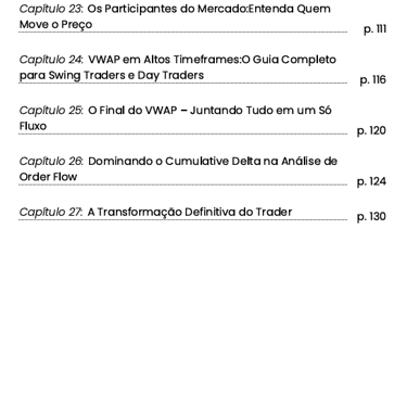 Com certeza. O livro foi escrito para trazer uma visão mais profunda e estratégica, focando nos pilares que realmente diferenciam traders consistentes dos que vivem no ciclo de frustração, mesmo após anos no mercado.